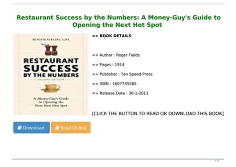 TTM - Read Online Restaurant.Success.by.the.Numbers.A.Money.Guy.s.Guide.to.Opening.the.Next.Hot.Spot Hardcover BookBoon